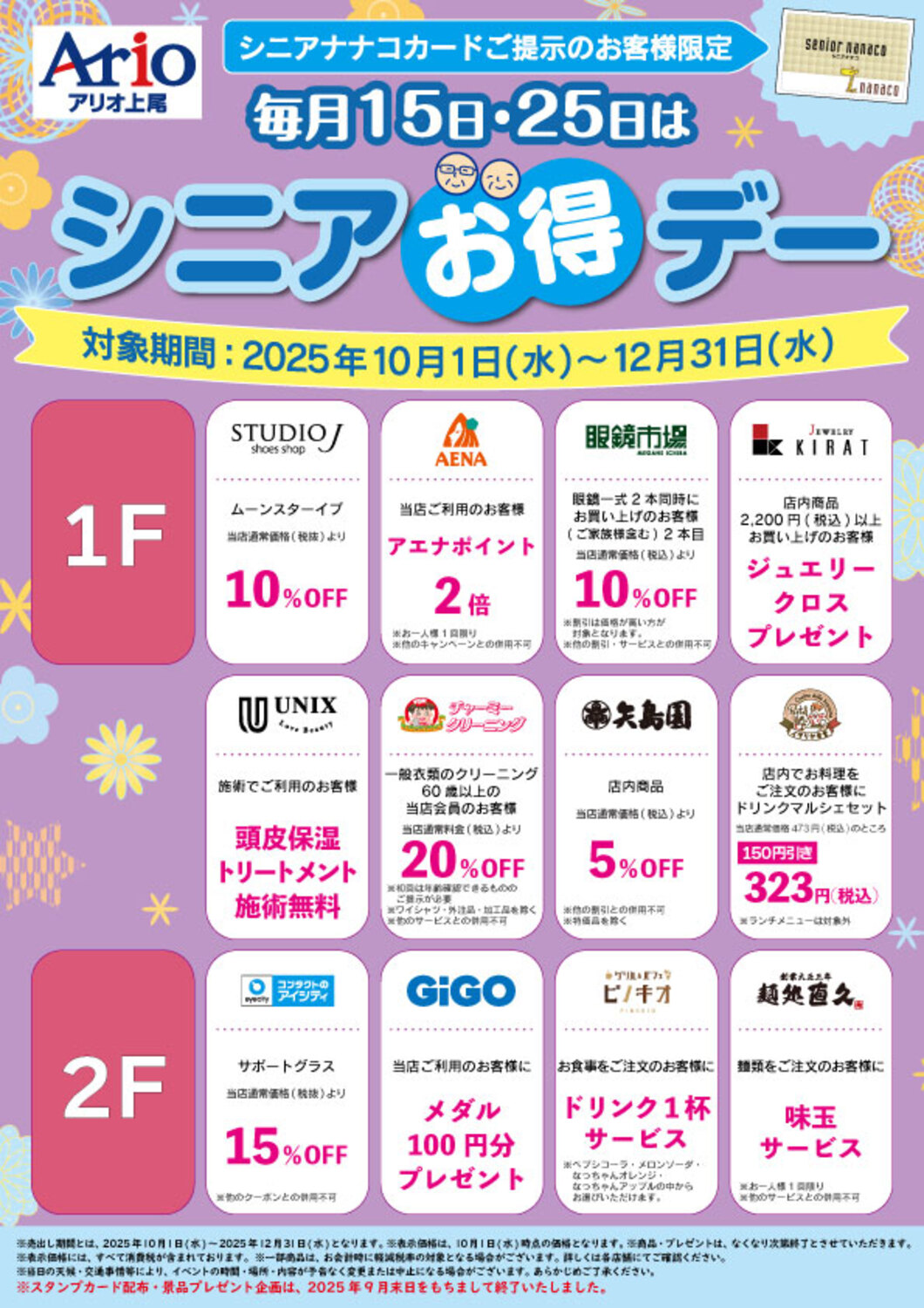 シニアナナコカードご提示のお客様限定特別企画を実施しています🥳