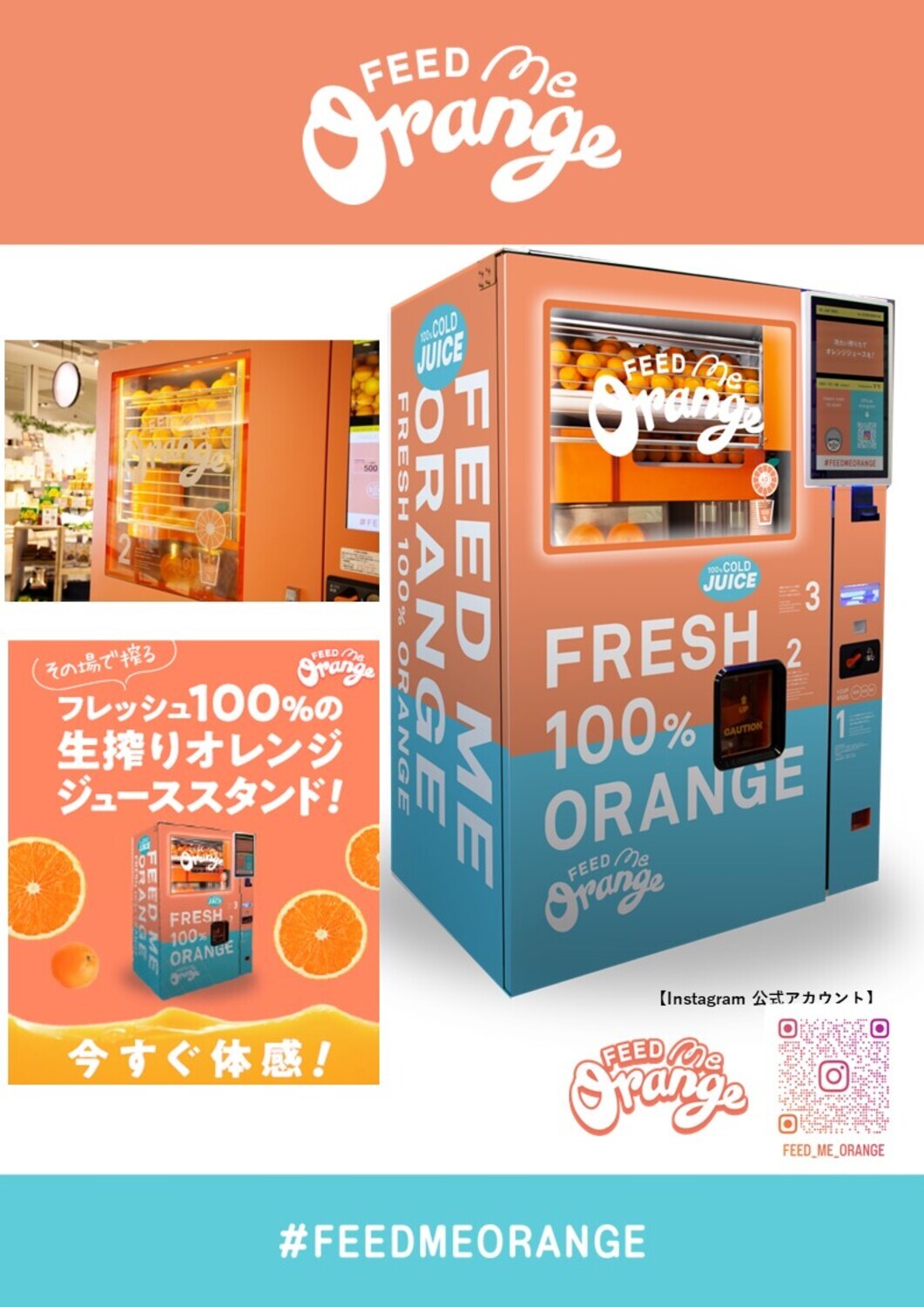 【生搾りオレンジジュース自動販売機Feed ME Orange】