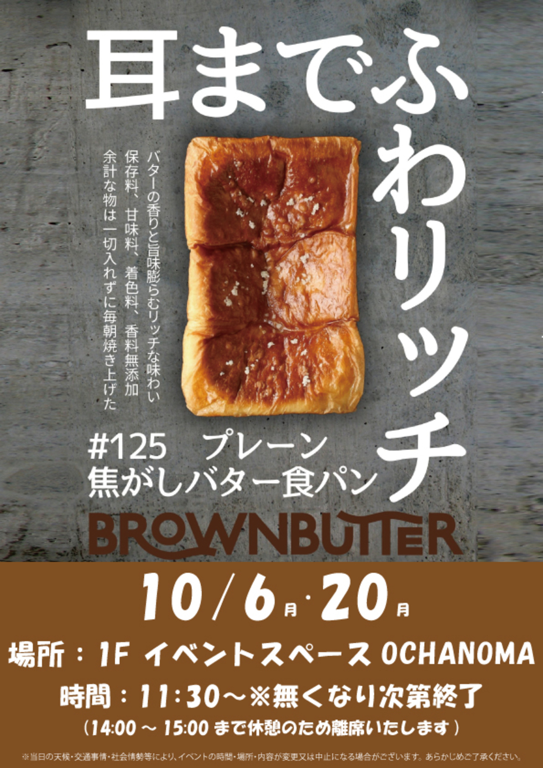 【10月スケジュール】BROWN BUTTER 焦がしバター食パン専門店 数量限定発売!