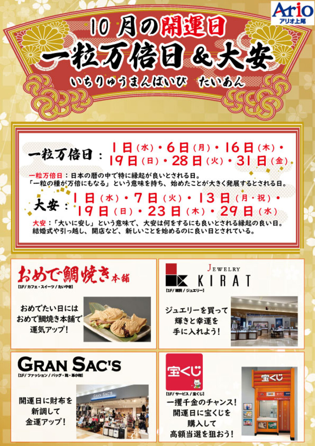 大安:10/1(水)・10/7(火)・10/13(月・祝)・10/19(日)・10/23(木)・10/29(水~