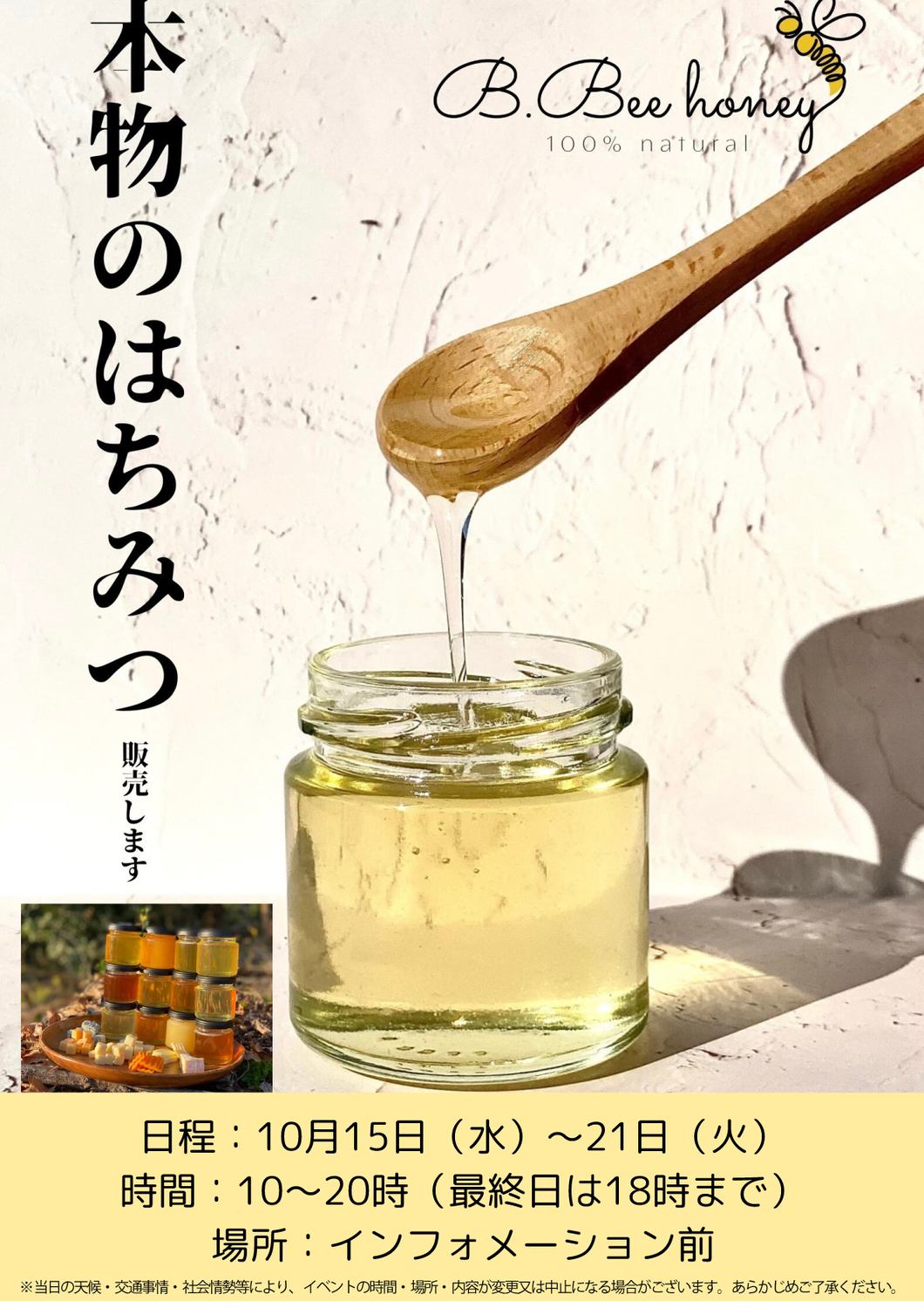 今回は5~7種類のはちみつをご用意してお待ちしております。ご試食もご用意しておりますので是非お気軽にお立ち寄りください。