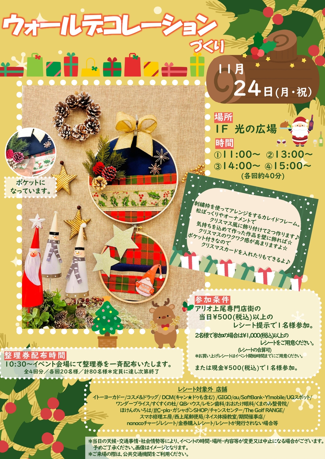 アリオ上尾専門店街の当日500円(税込)以上のレシートをご提示で1名様参加