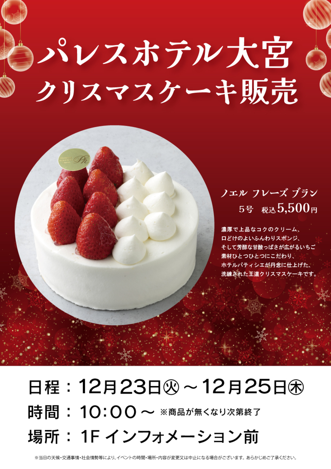 パレスホテル大宮 クリスマスケーキ販売