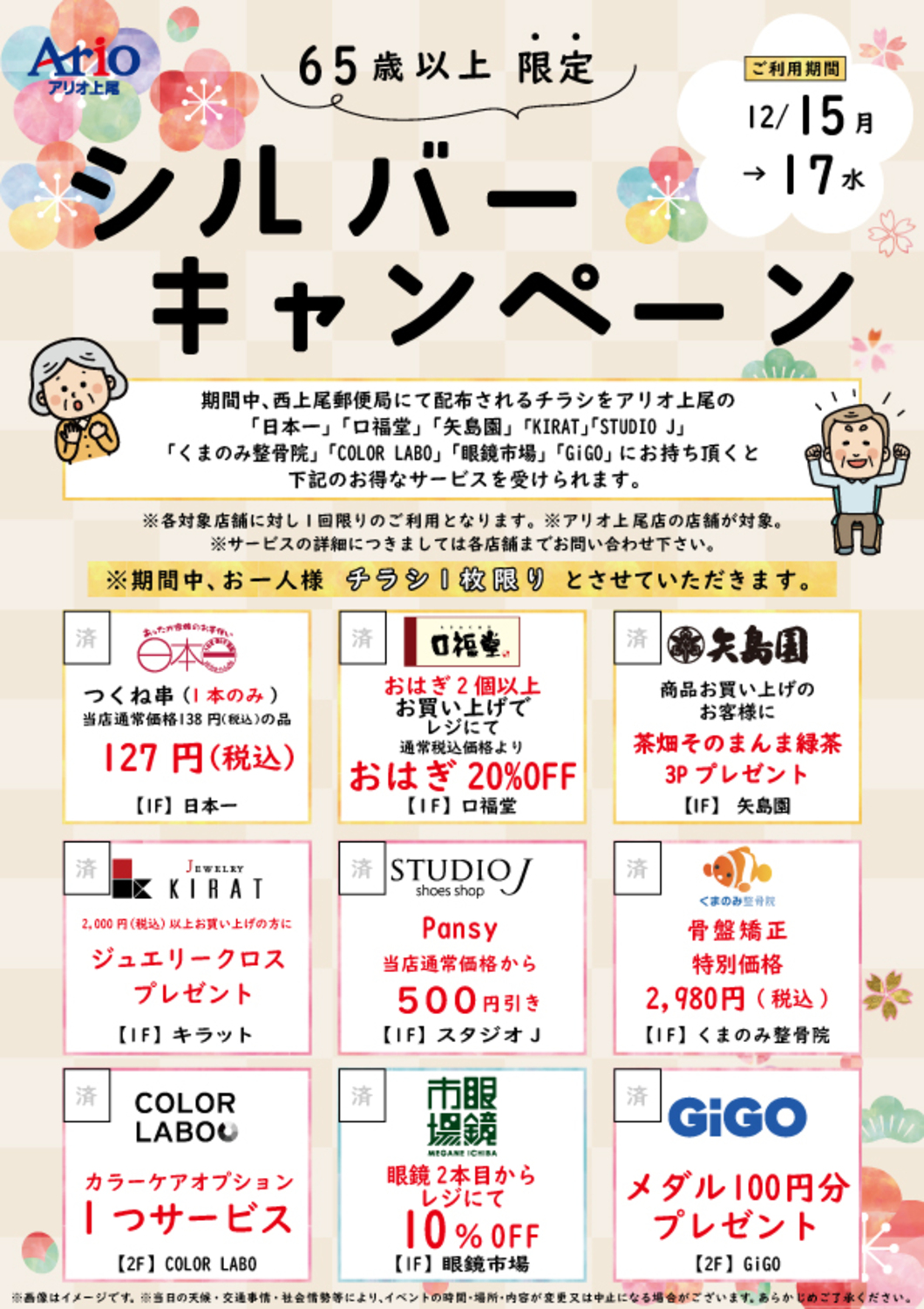 12/15(月)~17(水)の期間中、西上尾郵便局にお越しの65歳以上のお客様限定!
