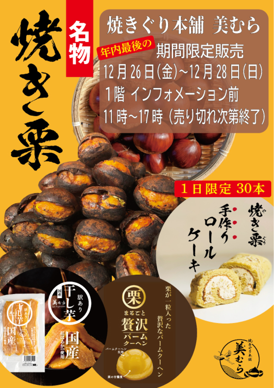 出店日の朝焼き上げた栗をさいたま市北区宮原町にある「焼きぐり本舗 美むら 大宮宮原店」より直送!