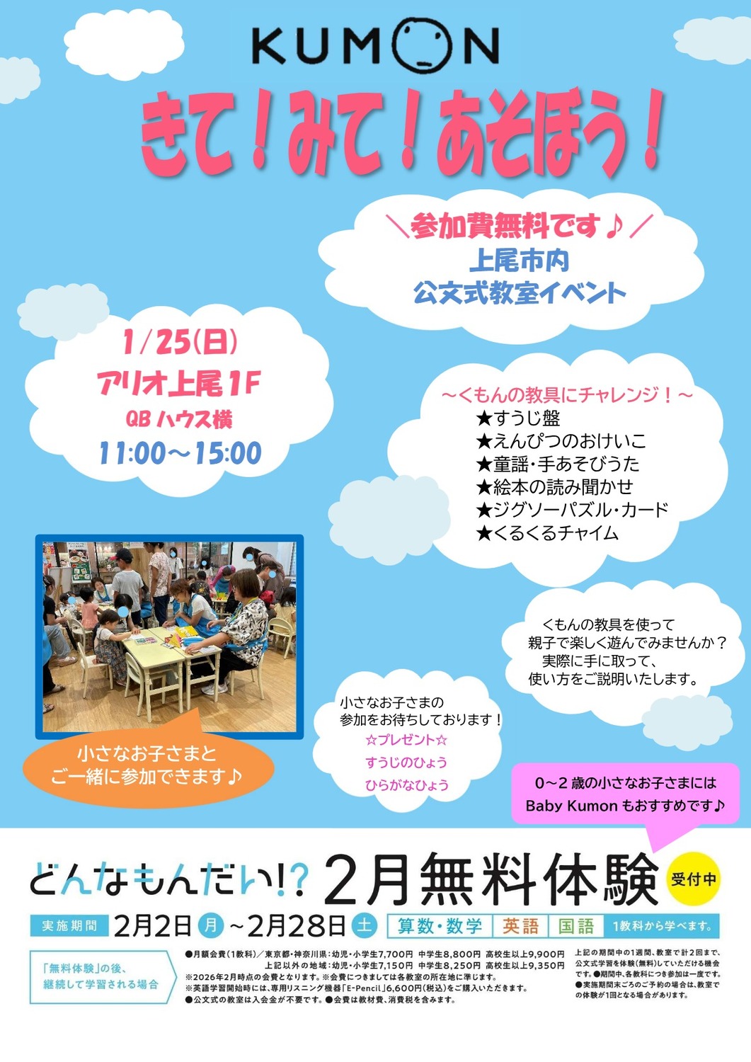 また、Baby Kumonのコーナーもあります。参加費は無料です。