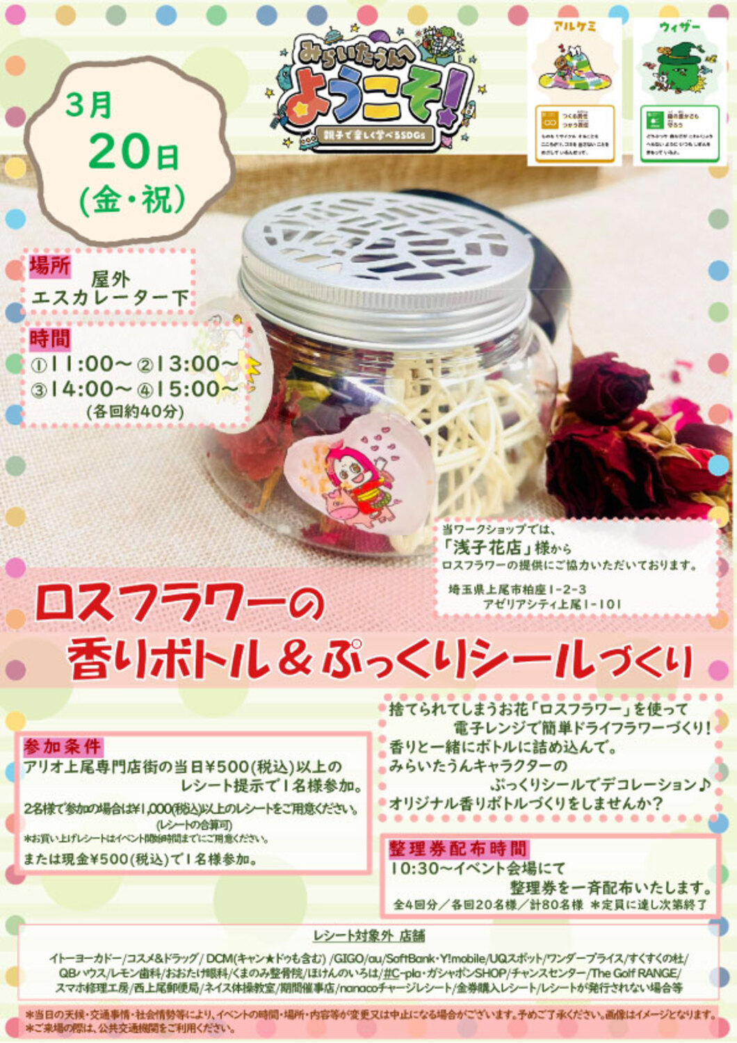 アリオ上尾専門店街の当日500円(税込)以上のレシートをご提示で1名様参加