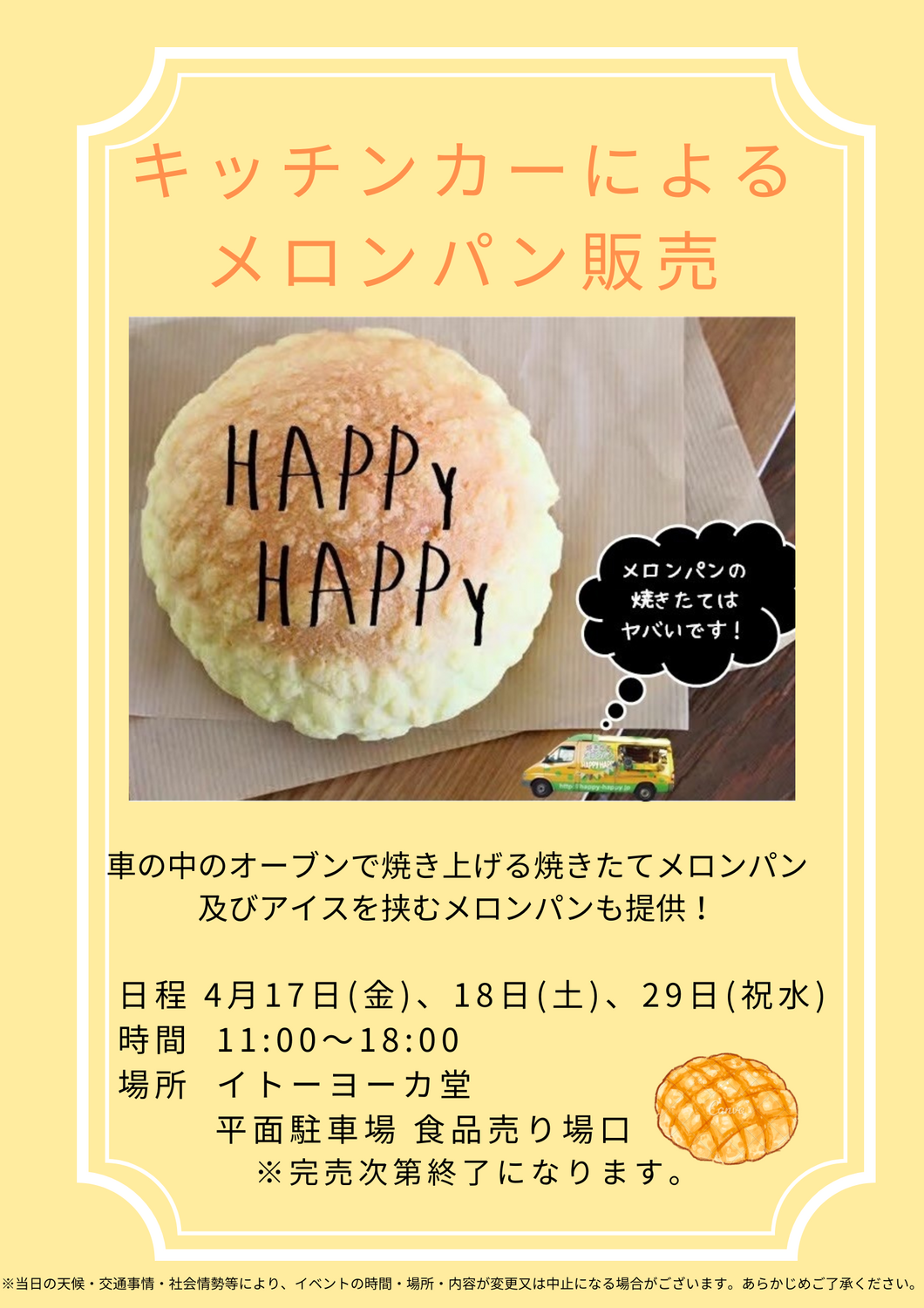 キッチンカーによる メロンパン販売