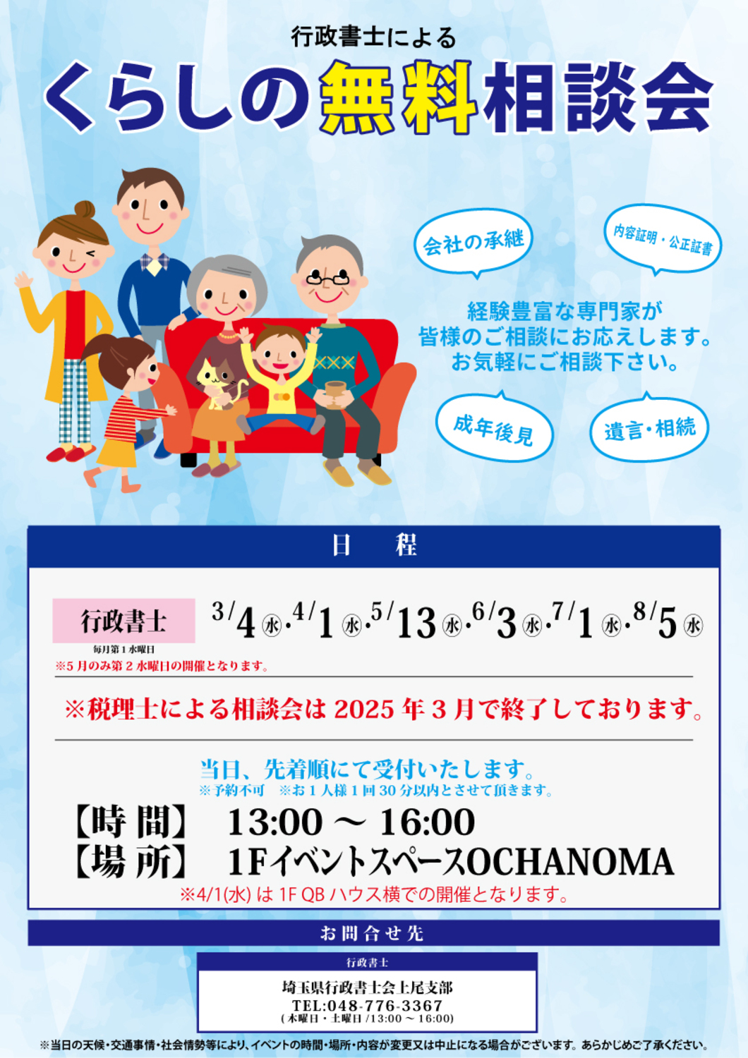※4/1(水)の開催場所は【1F QBハウス横】に変更となりました。