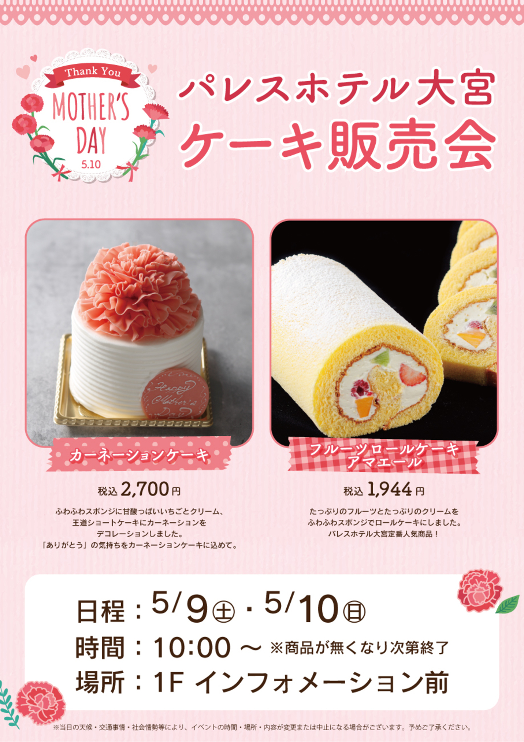 パレスホテル大宮から母の日にぴったりなケーキを販売いたします!