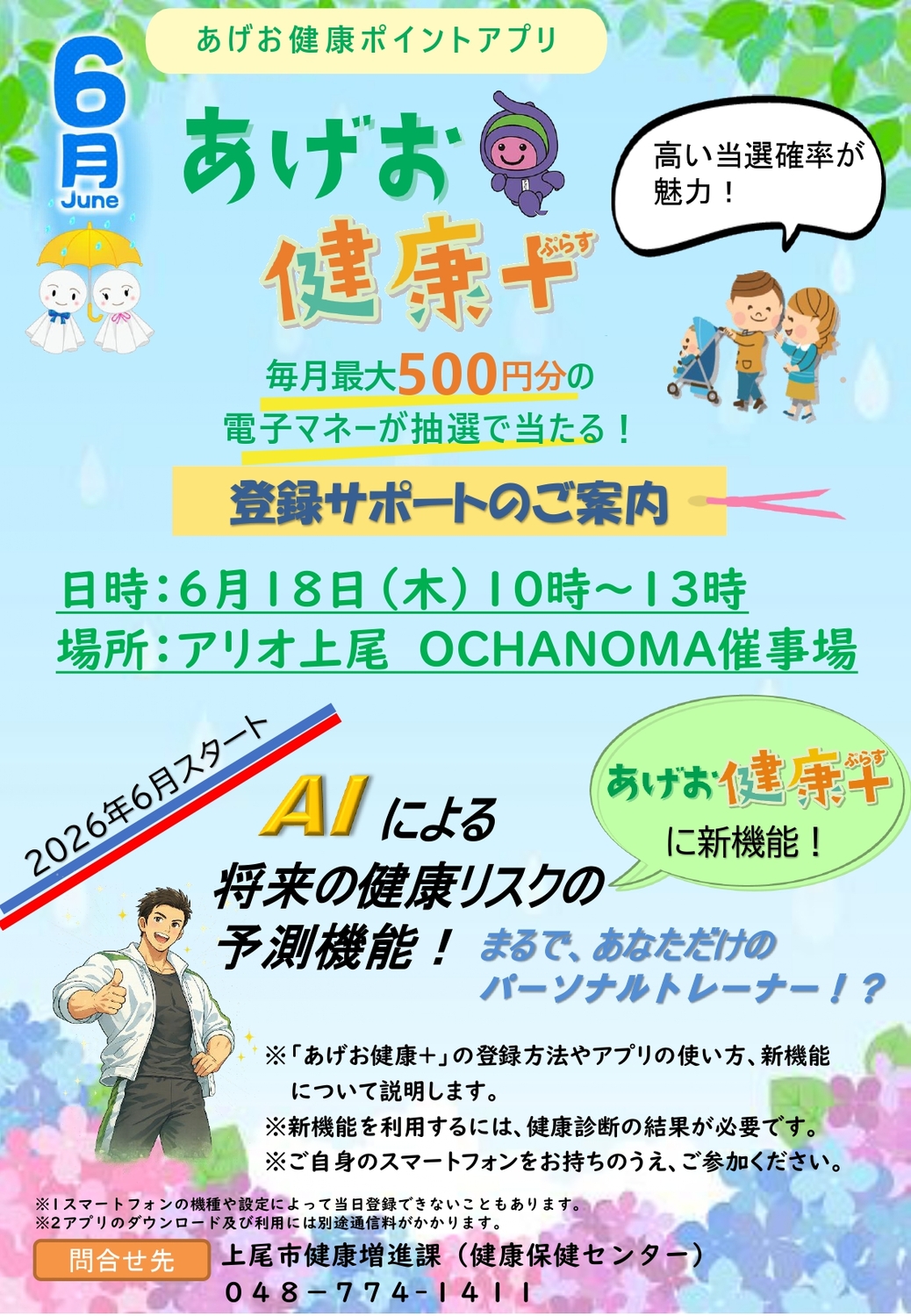 ●あげお健康ポイントアプリ「あげお健康+」のご案内
