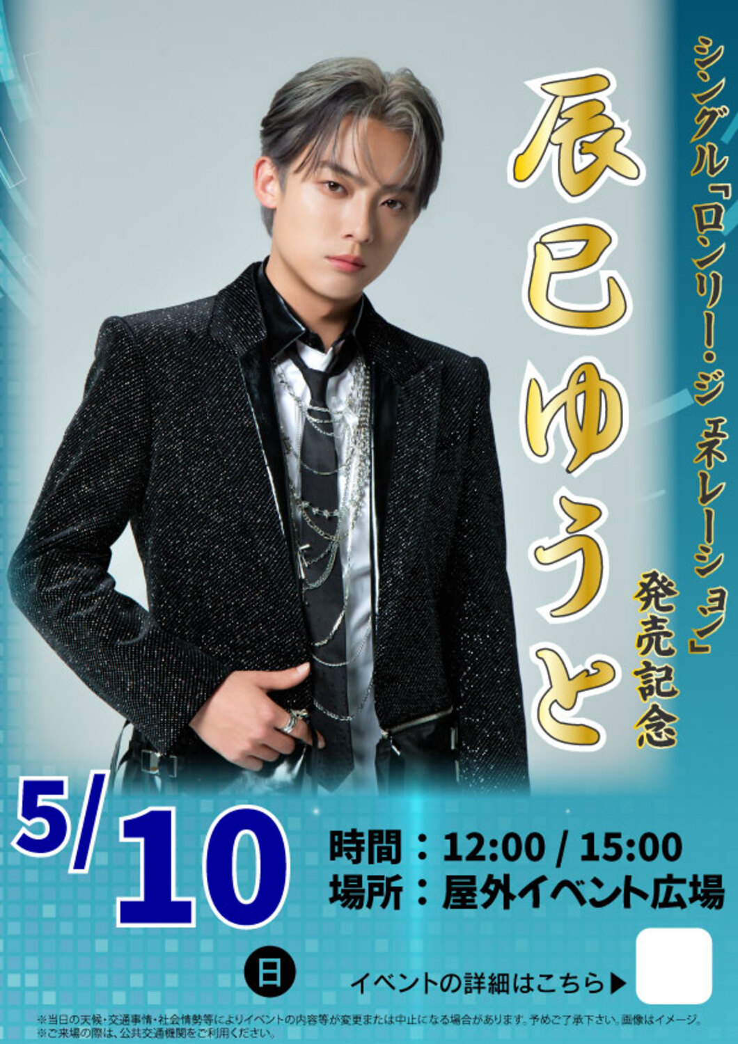 辰巳ゆうと シングル「ロンリー・ジェネレーション」発売記念イベントをアリオ上尾で開催いたします!