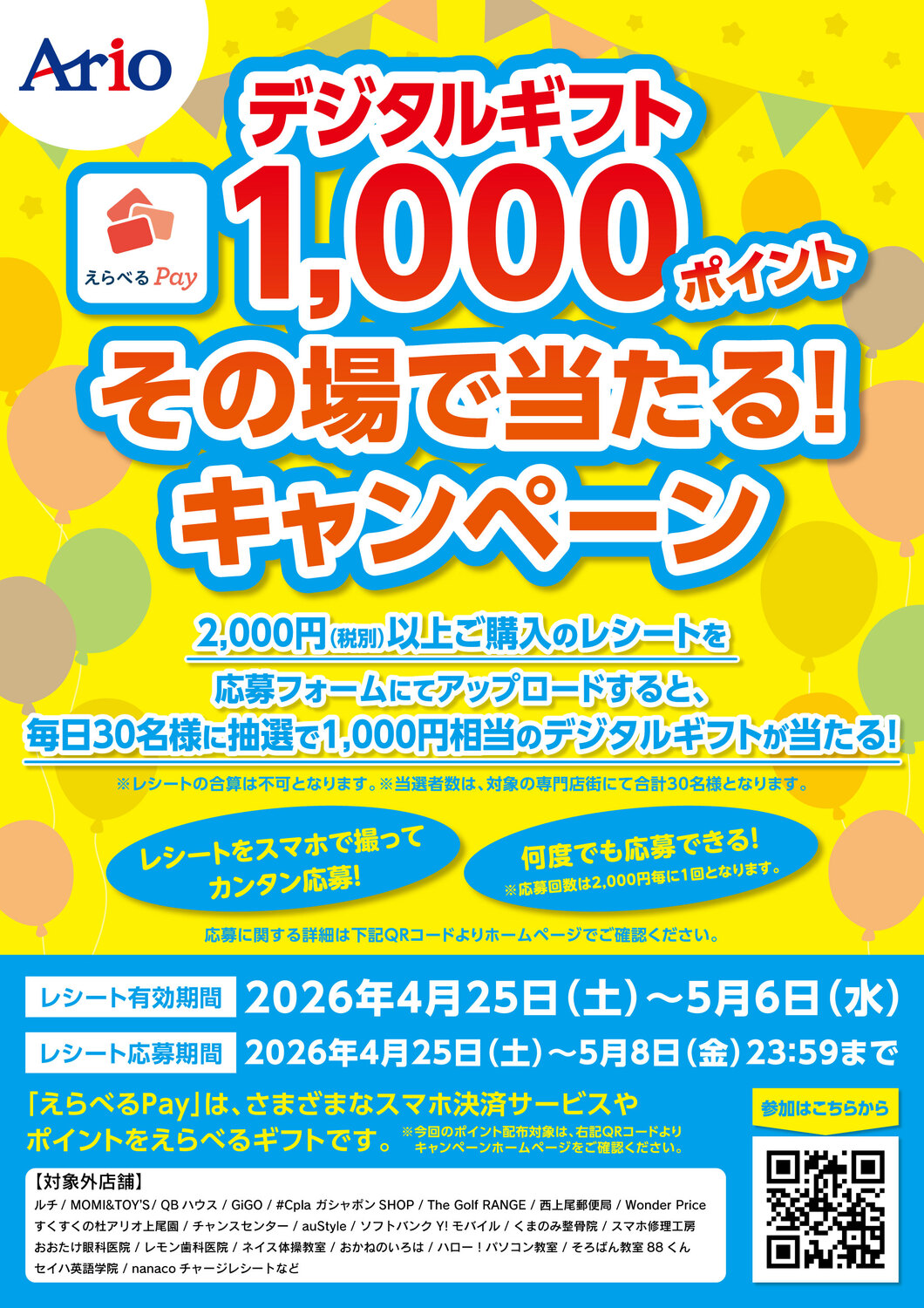 キャンペーンへは、下記URLまたは館内掲示のポスター、参加テナントのレジ前にある三角POPなどからご参加いただけます。