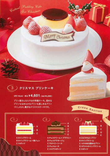固めなプリンもなめらかなプリンも楽しめるプリンづくしの少し贅沢なクリスマスケーキです。