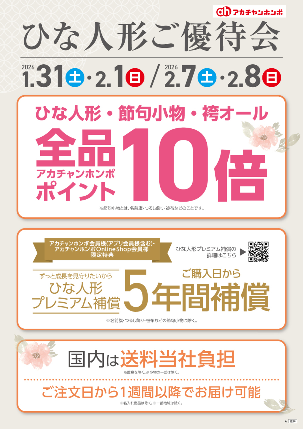 スタッフが人形の選び方を丁寧にご説明いたしますので、この機会に2Fアカチャンホンポへお越しくださいませ。