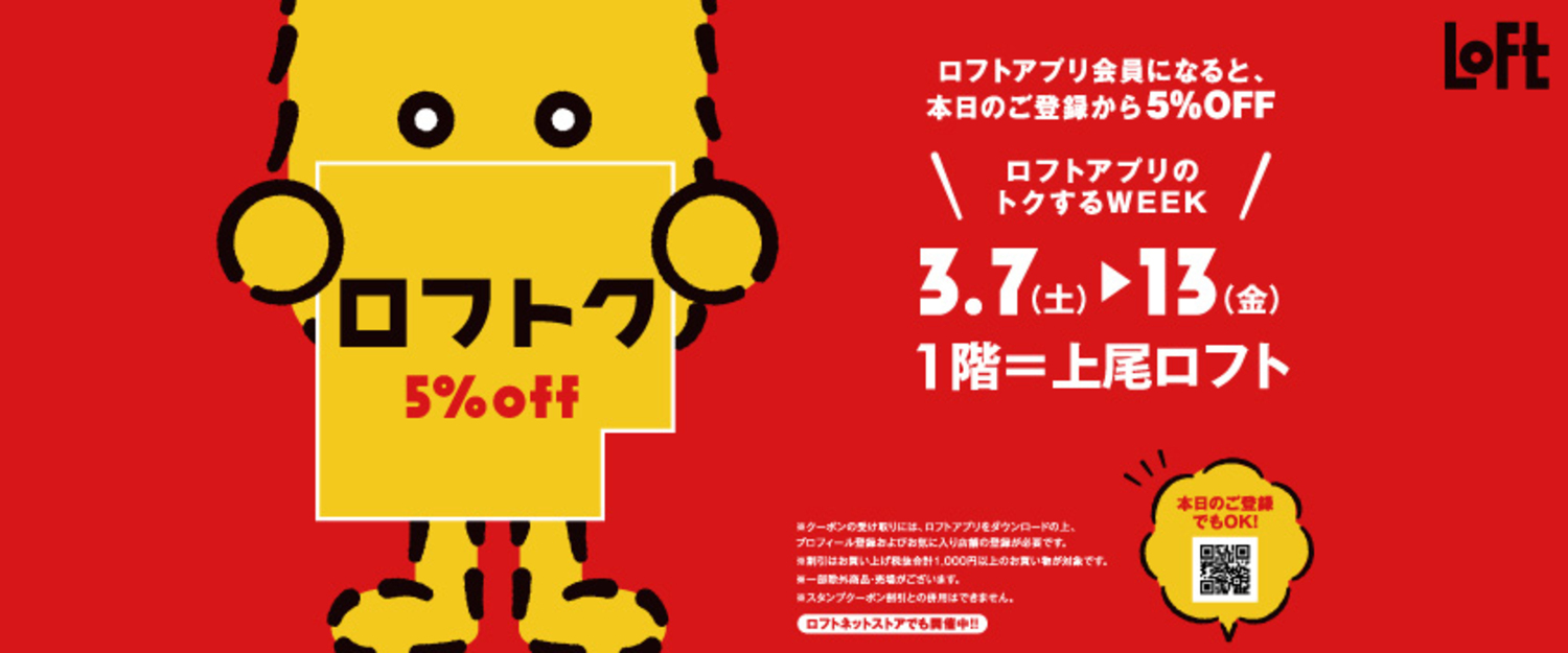 ロフトアプリ会員限定5%OFFでお買物が楽しめるオトクなWEEK「ロフトク」を開催いたします。