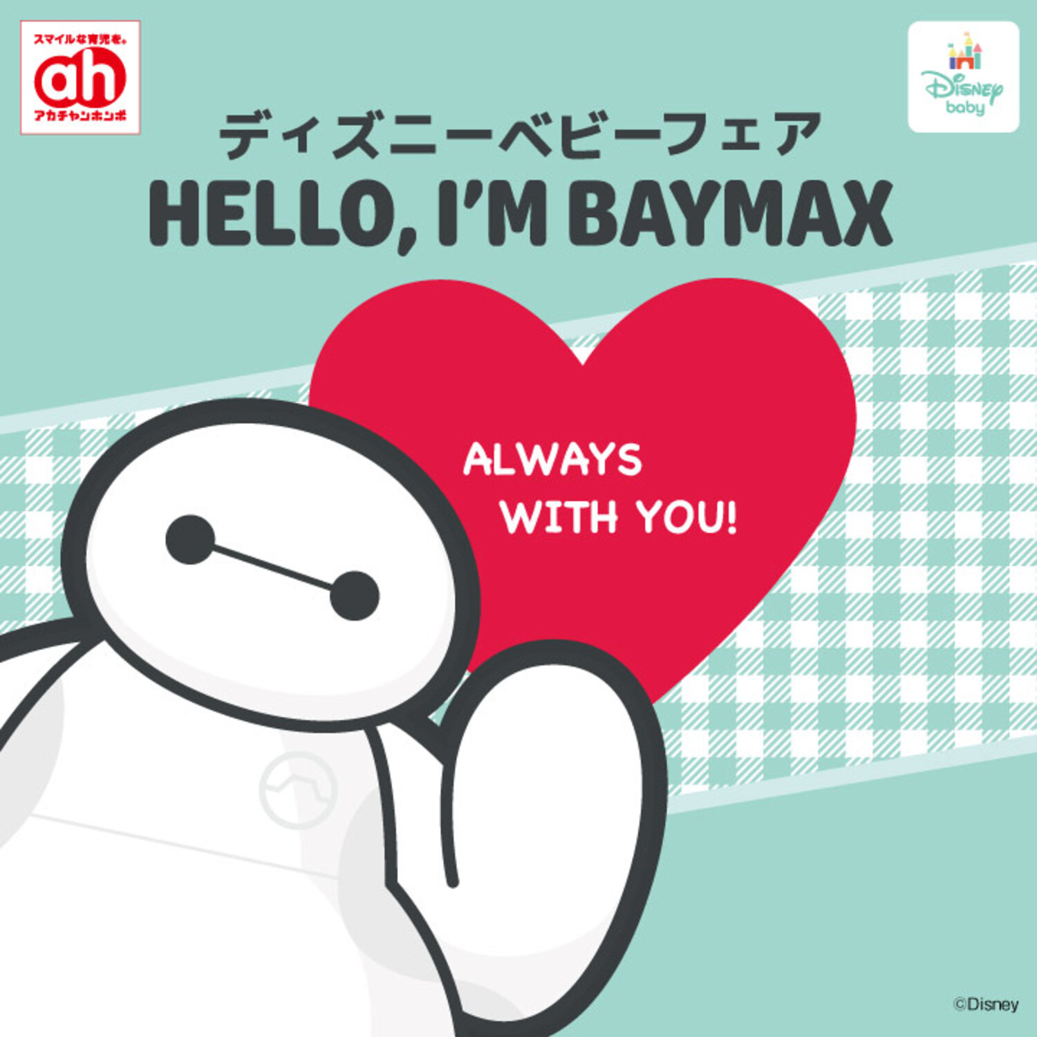 3/27(金)~4/23(木)の期間、ディズニーベビーフェア開催◎ 今度のディズニーベビーフェアはベイマックスがいっぱい! プレオールのおしりやスタイ、サファリハットや迷子ひも付きリュックの他、スリーパー やおしりふきにも!! この他、マリンスタイルがかわいいミッキー・ミニーのなりきりセットやプーさんの 母子手帳ケースなど、産前から産後まで、ディズニーの仲間と一緒♪