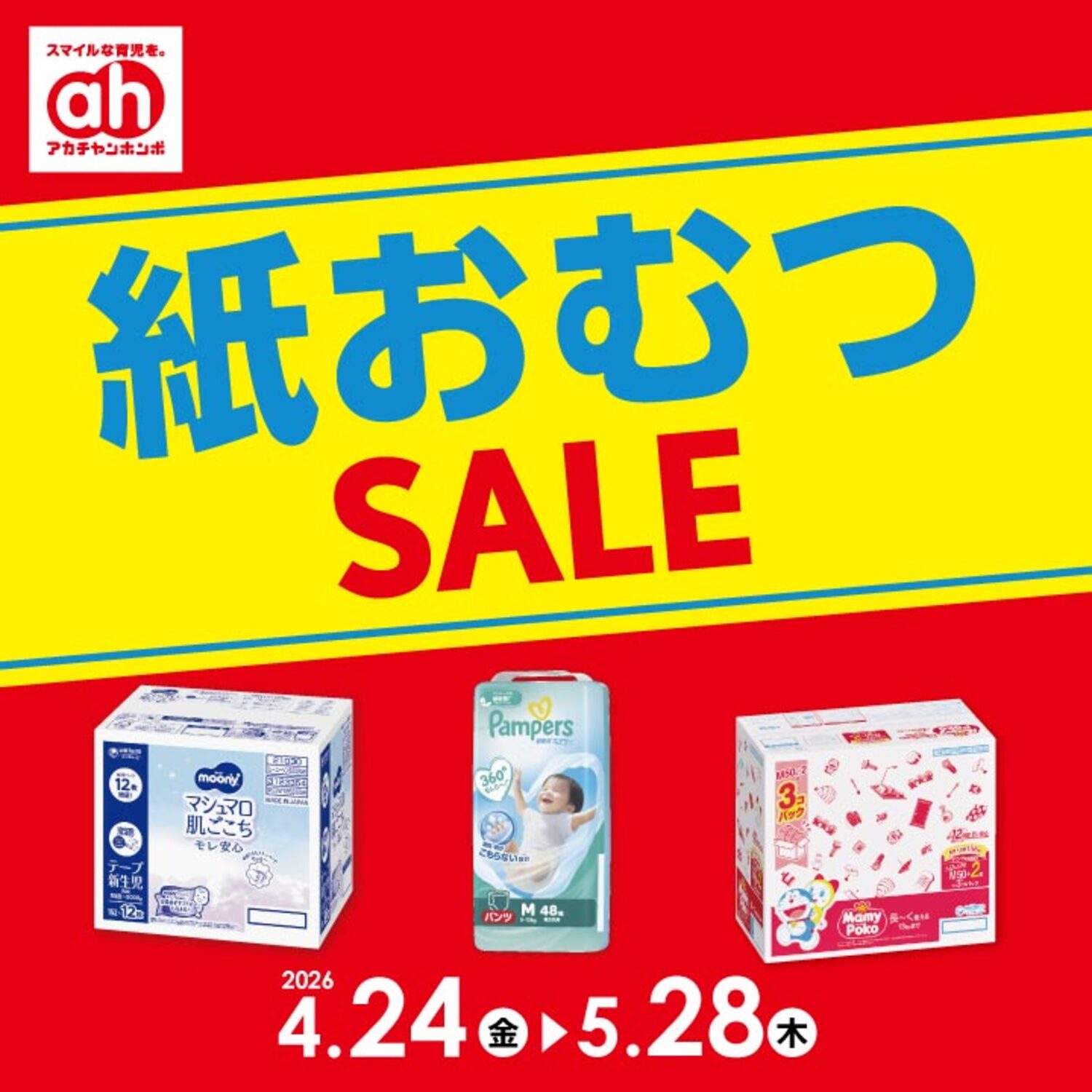 4/24(金)スタート、紙おむつSALEのご案内! ムーニー・ムーニーマンの低刺激であんしんやマミーポコなどのケースの紙おむつ の他、パンパースおやすみパンツや、グーンのプリンセス柄ぐんぐん吸収パンツ などパックの紙おむつ、プールや水遊びの必需品、スイミングパンツも販売中! 月間でお得が続く紙おむつを、ぜひチェックしてくださいね♪